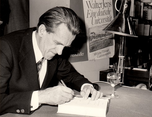 Walter Jens (8. März 1923 in Hamburg – 9. Juni 2013 in Tübingen), deutscher Philologe, Literaturwissenschaftler, Schriftsteller und Übersetzer. Er studierte nach dem in Hamburg abgeschlossenen Abitur Germanistik und Klassische Philologe. Aus gesundheitlichen Gründen musste er nicht im Zweiten Weltkrieg an die Front und konnte sein Studium in Freibug abschließen.